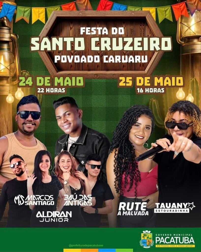 A tradicional Festa do Santo Cruzeiro está de volta e promete movimentar o Povoado Caruaru com muita música e animação nos dias 24 e 25 de maio de 2025. O evento, promovido pela Prefeitura Municipal de Pacatuba, faz parte do calendário cultural da região e atrai moradores e visitantes para uma grande celebração comunitária.