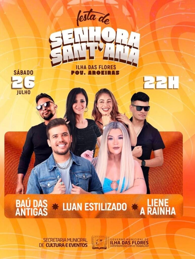A Festa de Senhora Sant’Ana já faz parte do calendário cultural e religioso do município de Ilha das Flores, e neste ano promete mais uma vez ser um grande sucesso. A celebração acontecerá no dia 26 de julho (sábado), a partir das 22h, no povoado Aroeiras, reunindo fé, cultura e música em uma só noite.