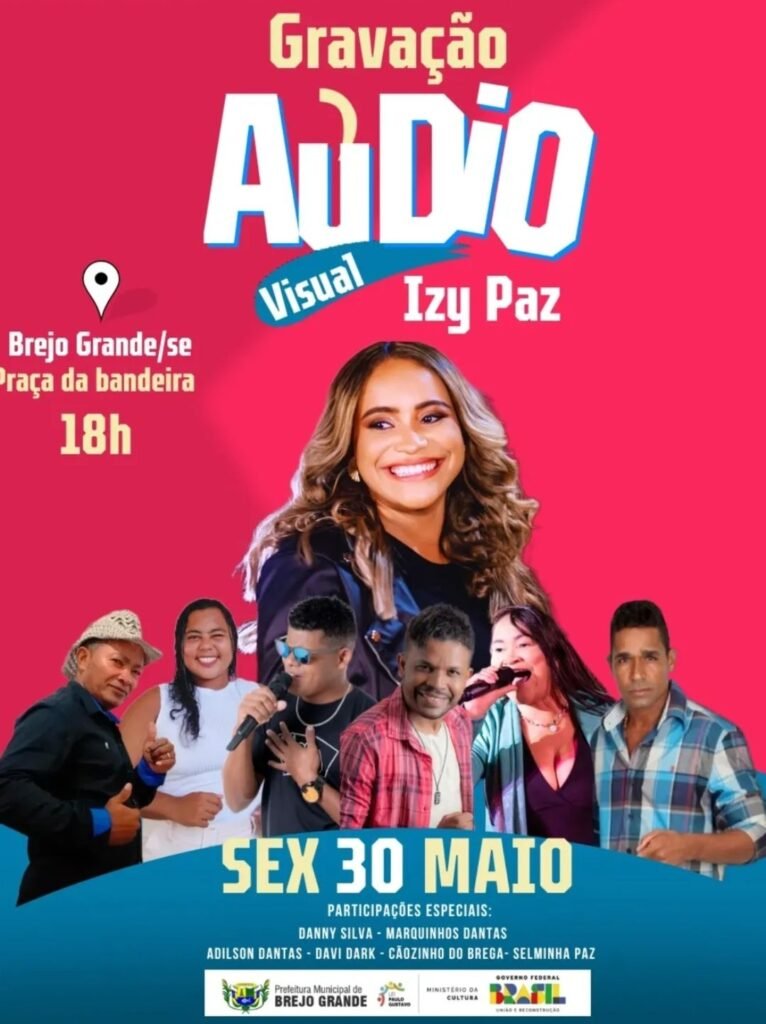 A cantora Izy Paz se prepara para um dos momentos mais importantes de sua carreira: a gravação do seu novo projeto audiovisual, que acontecerá no dia 30 de maio (sexta-feira), a partir das 18h, na Praça da Bandeira, em Brejo Grande/SE.