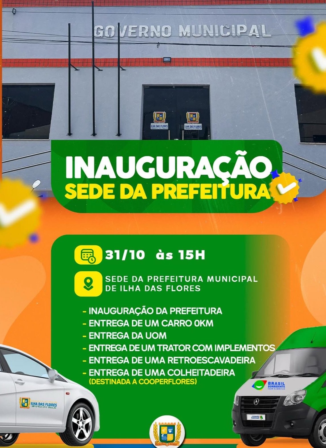 Na tarde desta Sexta-feira, 31 de outubro, o município de Ilha das Flores vive um momento histórico com a inauguração da nova sede da Prefeitura Municipal....