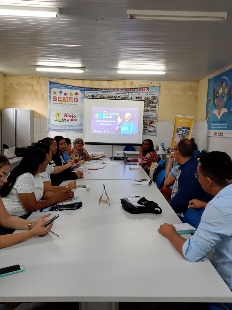 Em Brejo Grande, as atividades aconteceram nos dias 15 e 16 de setembro. As outras cidades que receberão as formações em EJA serão: Carauari (AM), Coari (AM), Oiapoque (AP), Belém (PA), Fortaleza (CE), Caucaia (CE), Icapuí (CE), Alto do Rodrigues (RN), Conde (BA), Araçás (BA), São Francisco do Conde (BA), Santa Luzia do Itanhy (SE), Ipojuca (PE) e Cabo de Santo Agostinho (PE).